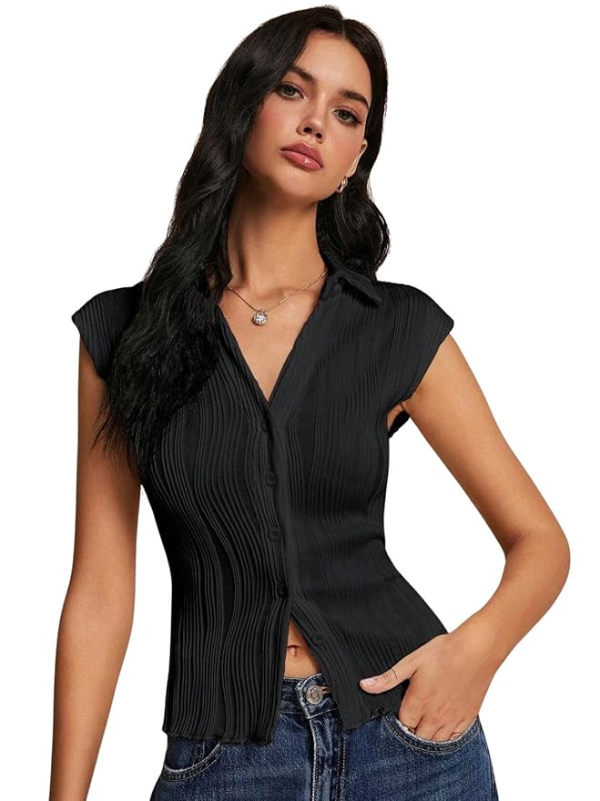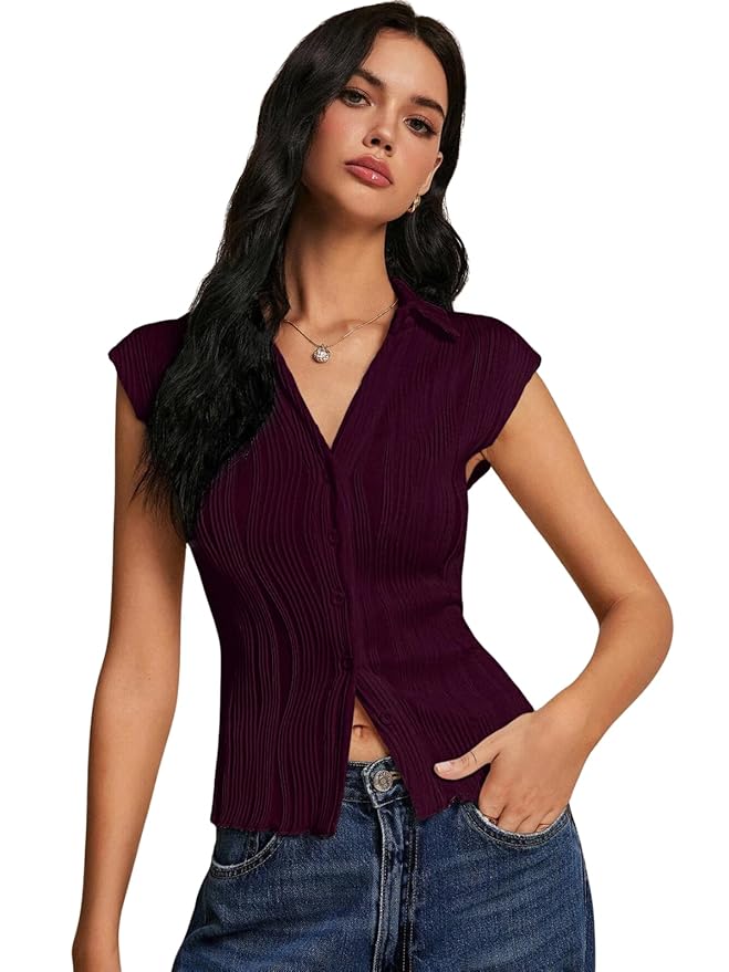 - Tailored Silhouette: Designed with a trendy lapel collar, button closure, and regular fit, this woman top for women stylish achieves a perfect blend of cozy and elegant.
